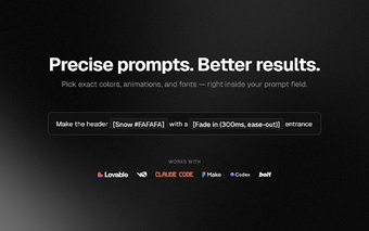 Cue เป็นส่วนเสริมของ Chrome ที่ออกแบบมาเพื่อช่วยนักเขียนโค้ดในเปลี่ยนความคิดที่คลุมเครือให้เป็นคำสั่งโค้ดที่ชัดเจน เครื่องมือนี้ฟรีช่วยให้ผู้ใช้พิมพ์ '/q' เพื่อเข้าถึงเมนูแบบเลื่อนลงที่มีตัวเลือกที่คัดสรรสำหรับสี, การเคลื่อนไหว, การเคลื่อนไหว, และฟอนต์ การเลือกแต่ละอย่างจะถูกผสานเข้ากับคำสั่งอย่างราบรื่นในรูปแบบของโทเค็นที่อ่านได้ ซึ่งจะถูกแปลงเป็นค่าที่มีโครงสร้างที่ AI สามารถเข้าใจได้ ช่วยเพิ่มประสบการณ์การเขียนโค้ดโดยรวม ด้วยโทเค็น 157 ตัวที่มีอยู่ในสี่หมวดหมู่ Cue เสนอห้องสมุดที่ครอบคลุมสำหรับความต้องการการเขียนโค้ดสร้างสรรค์